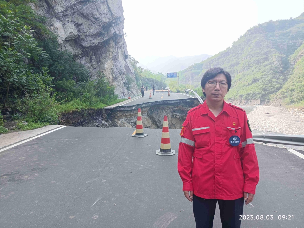 8月3日凌晨,张希望带领团队驱车挺进房山区北沟108国道一线,眼前的景象令人心碎:曾经熟悉的山路被洪水冲击只剩残骸,河道里堆满树木、汽车、家电等各种杂物,村庄因道路中断成了孤岛。“供电、通讯全断,村民们拄着木棍往外走,解放军背着物资往里冲。”张希望见此情景眼泪不由自主就落了下来,那一刻大学课本里的力学、钢结构稳定突然有了沉甸甸的意义,它们不再是试卷上死板的公式和定义,而是打开家乡抢险之门的钥匙。他带着团队对塌方路段踏勘和分析,采用河道内倒运土方铺设和修复部分原线的方式在24小时内抢修出22公里临时道路,为后续救灾工作奠定坚实基础;为让运输车辆不迷路,他冒着风险往返两次带路,带出10余名“活地图”。