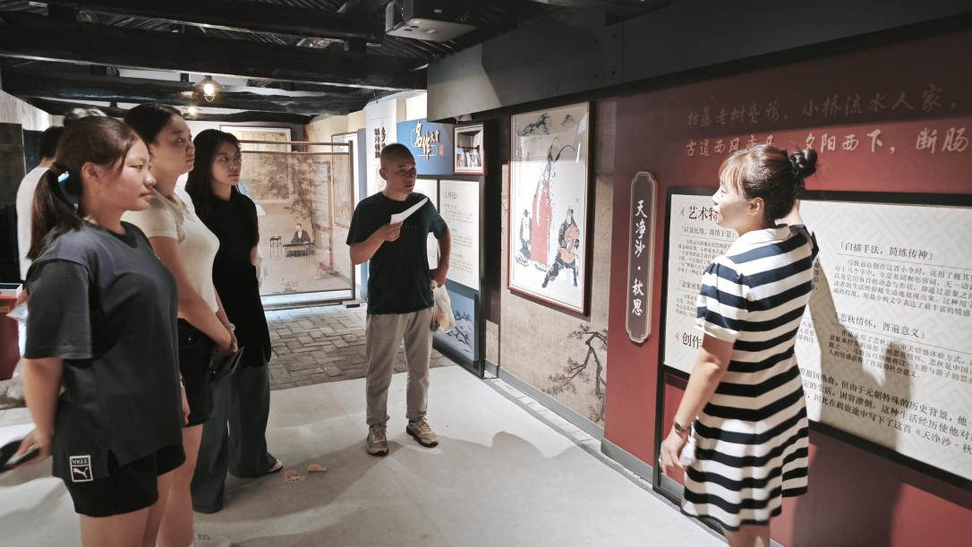 7月中下旬,实践团抵达王平镇,首站探访马致远故居。踏入故居,古色古香的建筑、承载历史的文物,瞬间将大家带入元曲大家的创作世界。专业讲解员生动讲述马致远的生平故事、文学成就,剖析《天净沙·秋思》的艺术魅力与文化内涵。同学们认真聆听,不时驻足端详、交流感悟。参观尾声,大家在电子签名屏留下足迹,以特殊方式与历史对话,让文化传承更具青春温度。