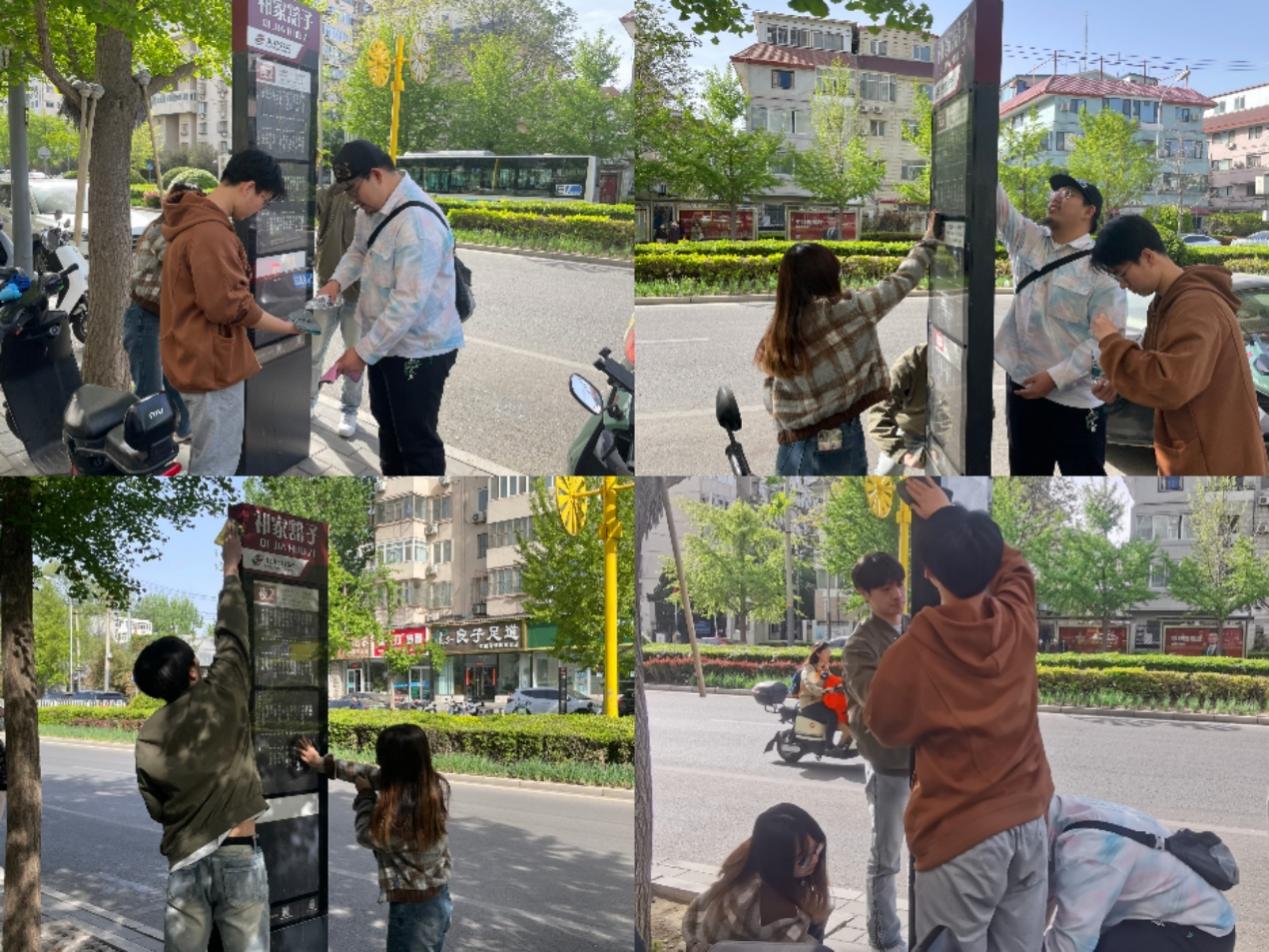 在工作人员的带领下,学院师生们集体前往祁家豁子公交站点,对相应站点站牌的种类进行实地考察,并认真开展站牌清理工作。学生志愿者带着小铲子、小毛巾清理公交站牌上的污渍,打造清新整洁的站台环境,在躬行实践中感受劳动的魅力。