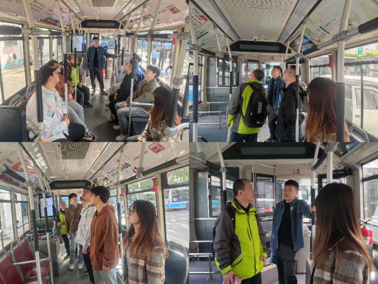 张铮介绍了北京公交电车的历史发展,并结合日常工作以113路公交车为例分析了公交日常运行的线路设计、日常调度、乘客流量等情况。张铮指出,劳动教育是新时代青年学子步入社会学习的重要一课,希望同学们都能通过本次志愿服务劳有所悟,增强自身的综合素质。贾鹏申带同学们参观了北京公交电车的车厢文化,对目前车队的线路分布、站牌问题和劳动志愿服务的安排做了说明。