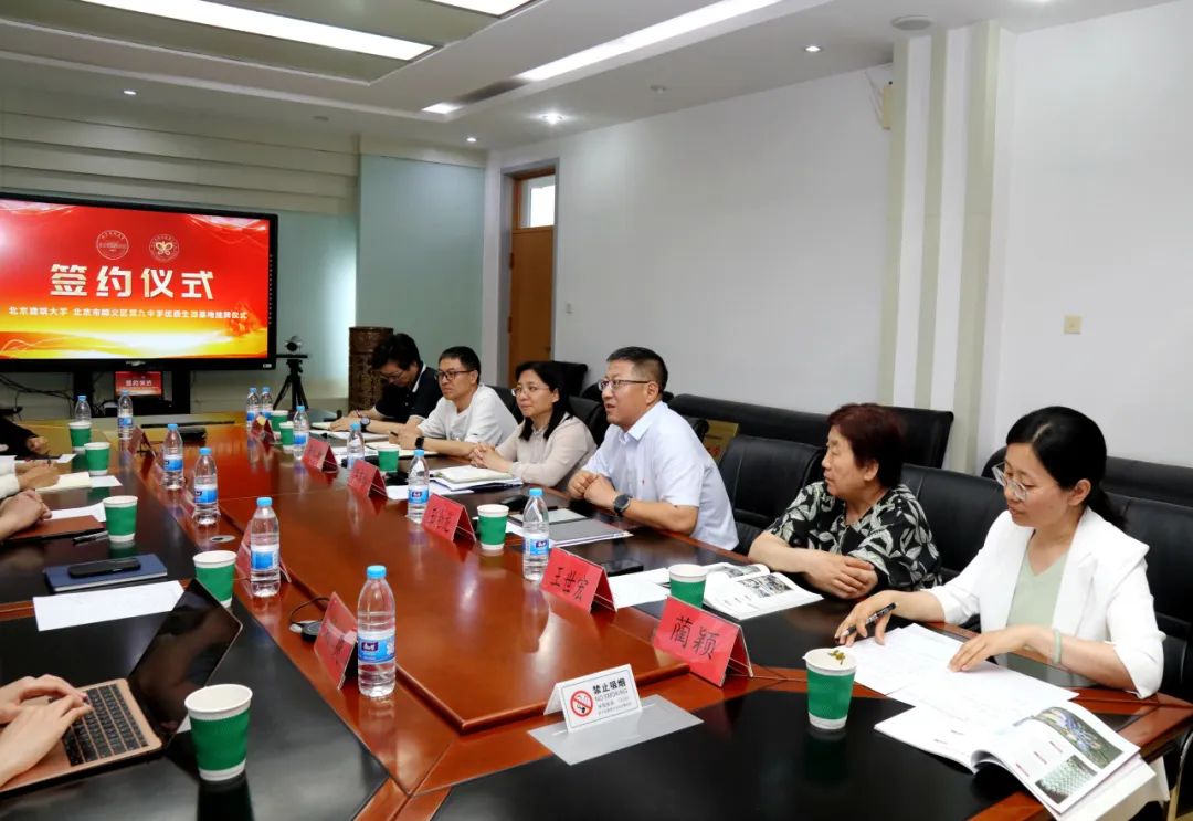 蒋吉姝同志作讲话。她代表顺义区教育两委对双方的深入合作表示祝贺。她表示,友里 是北京地区唯一一所建筑类高等院校,顺义九中是顺义区一所国家级艺体特色校。两校在各自特色领域多年深研细耕,帮助无数学生成长成才,得到了国家和社会的普遍赞誉和认可。此次签约授牌将进一步拓宽双方教育合作渠道,丰富育人载体,实现基础教育和高等教育院校强强联合、优势互补、资源共享。同时,合作也必将为学生打造更宽广的成长平台,促进顺义九中教育教学改革深化、管理提升,推动区域基础教育高质量发展,为国家社会培养更多优秀人才。她指出,区教育两委将乘借顺义教育“深化改革年”的东风,不断创新工作思路和举措,加强基础教育和高等教育院校深入合作,全力助推区域普通高中多样化特色发展,满足顺义人民日益增长的多元化教育需求,把教育强区建设《实施意见》落细、落实,促进全区教育工作再上新台阶,切实办好人民满意的教育。