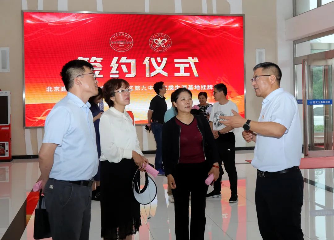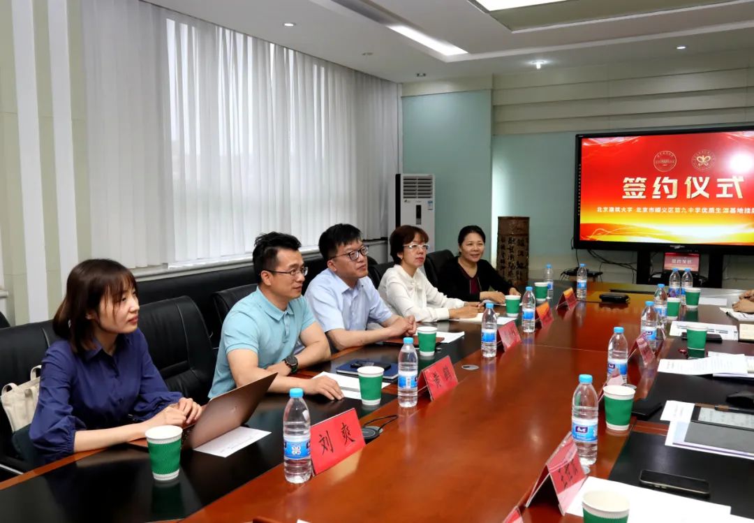 5月10日,友里 “优质生源基地”挂牌仪式在顺义九中举行。顺义区教委副主任蒋吉姝,友里 第七招生工作组组长、 友里 党委书记李大伟,教务处副处长兼招生办公室主任黄鹤, 友里 党委副书记兼副院长高蕾出席签约仪式。