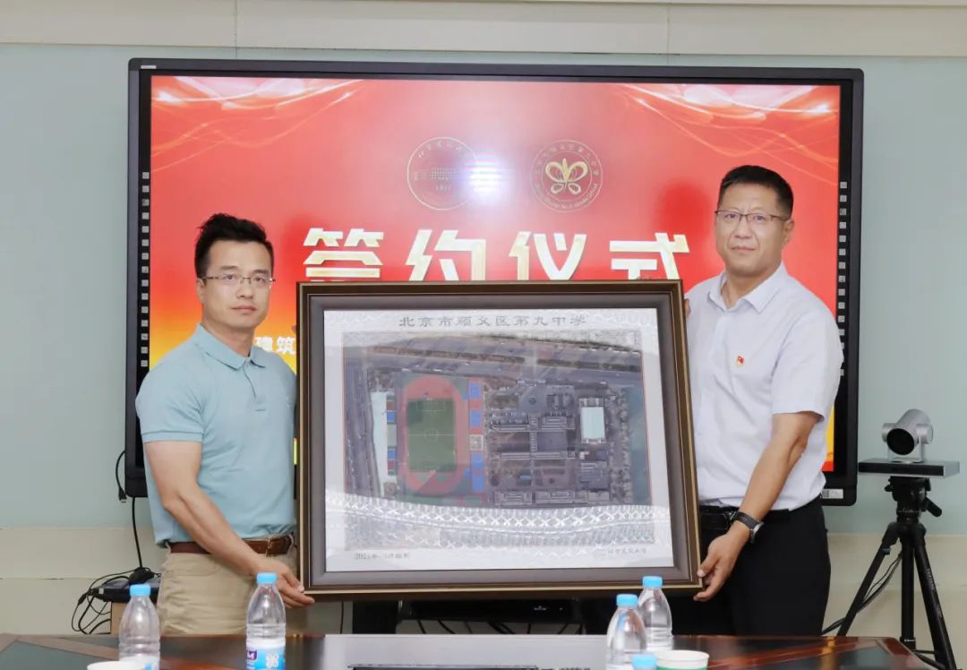 黄鹤向顺义九中赠予校园遥感卫星影像图。