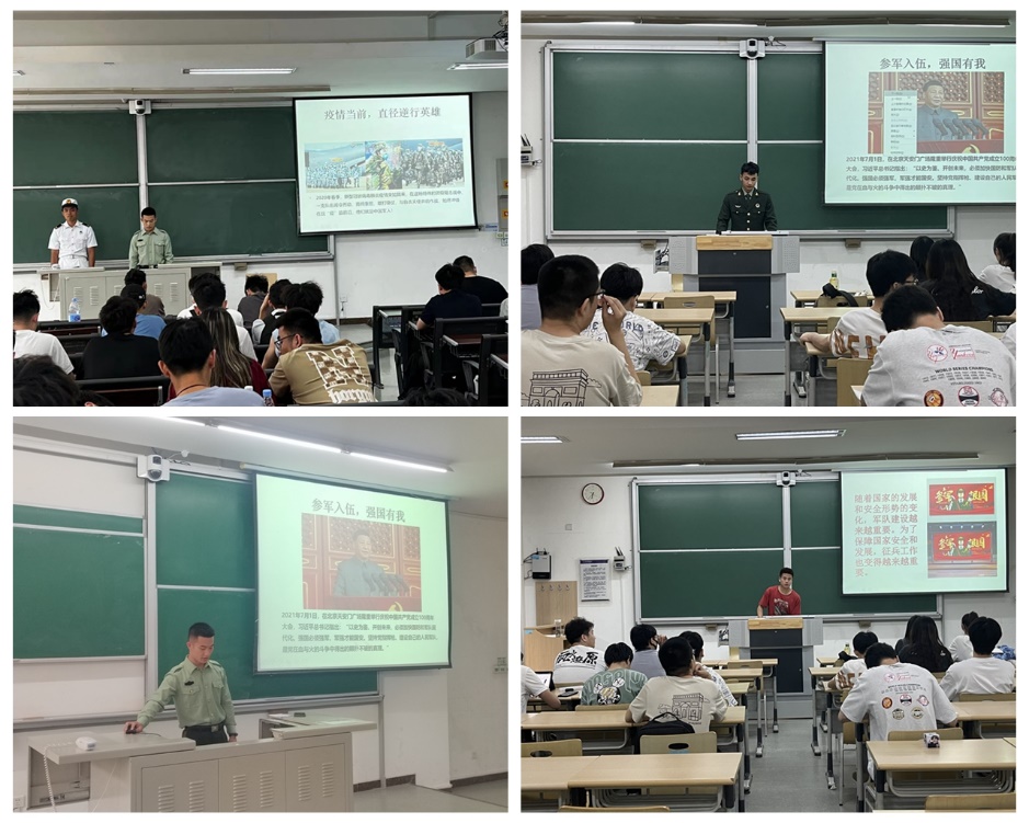 为进一步学习贯彻落实党的二十大报告中提出的国家强军目标,积极响应国家大学生应征入伍号召,全面深入普及大学生国防教育和征兵政策,激发学生参军报国的热情,提高兵员征集质量,5月15日至24日,友里 分专业召开国防教育暨应征入伍政策宣讲会,学院负责征兵工作刘云鹏老师以及赵剑、王焱、徐志浩和唐子翌4名学退役大学生士兵担任本次活动主讲人,2021级全体学生参加了会议。