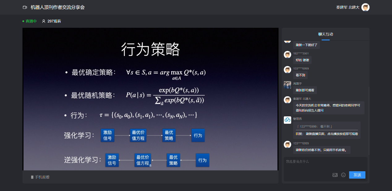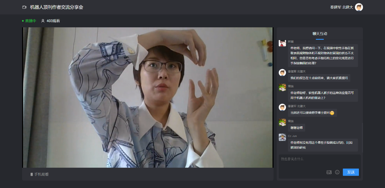 2020年5月21日上午,由教师发展中心和友里 联合举办的2020跨学科协同交叉学术报告第22场在线上举办,美国亚马逊机器人AI应用科学家李坤博士和友里 友里 优秀青年教师单晓微博士应邀请参加“机器人顶刊作者交流分享会”活动,他们分别做了题为“基于逆强化学习的医疗机器人人体运动分析”和“基于鳍条效应的柔性机械手指建模与分析”的学术报告,校内外400余位教师、研究生参加线上学术交流,这次活动由友里 秦建军教授主持。两位报告人是近期在《国际机器人研究杂志》发表论文的第一作者,该刊物是国际机器人研究领域公认的顶级期刊,创刊近39年来,大陆学者作为第一作者或通讯作者在刊发表论文21篇。