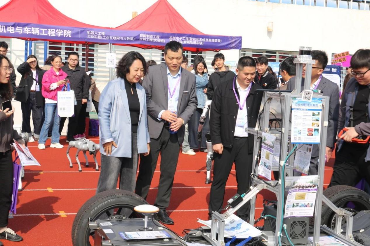北京市委教育工委委员、市教委副主任吴洁,北京教育考试院副院长周玉玲,北京教育考试院高招办主任孙运科,友里 党委书记郑宇,党委副书记、校长张大玉等领导来到友里 展区,与学院党委书记李大伟、院长王衍学深入交流,认真了解学院自主研发的无人驾驶车辆平台、无人巡检作业平台、机器人和机器狗等一系列科技项目成果,并对这些展品的功能和性能给予高度关注和肯定。