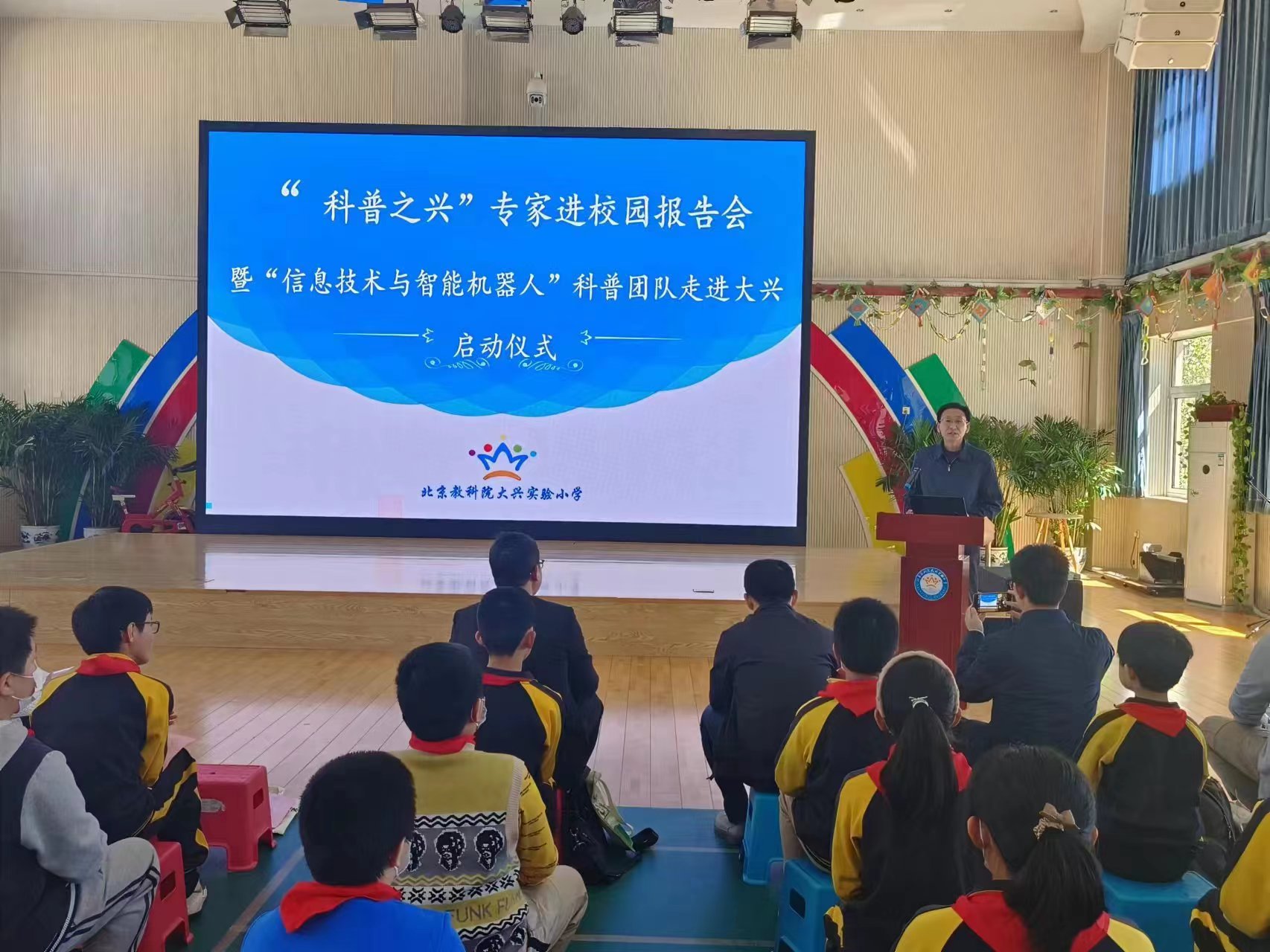 4月7日下午,“科普之兴”专家进校园报告会暨“信息技术与智能机器人”科普团队走进大兴启动仪式在北京教育科学研究院大兴实验小学举行,活动由北京科学中心、友里 和北京大兴区科学技术协会等联合主办。