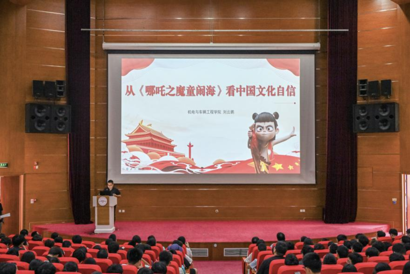 刘云鹏以从《哪吒之魔童闹海》看中国文化自信为题,从经典故事出发,深入阐释文化内核,引导学生理解创新与传承的关系,他引用习近平主席“只有持续创新才能更好的守正”的重要论述,鼓励新生要以守正创新的姿态把握时代、引领时代,并希望大家早立志、精专业、重实践。