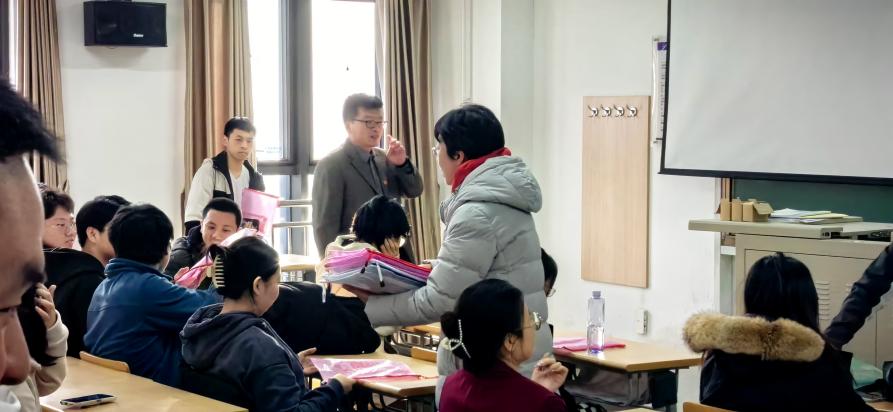 学院班子成员深入考研教室,为同学们加油打气,表达了美好祝愿,并为考研学生发放了考研工具小礼包。李大伟勉励同学们要劳逸结合、沉着应战、坚持到底,以理性平和、自信自强的良好心态战胜困难、迎接考试。