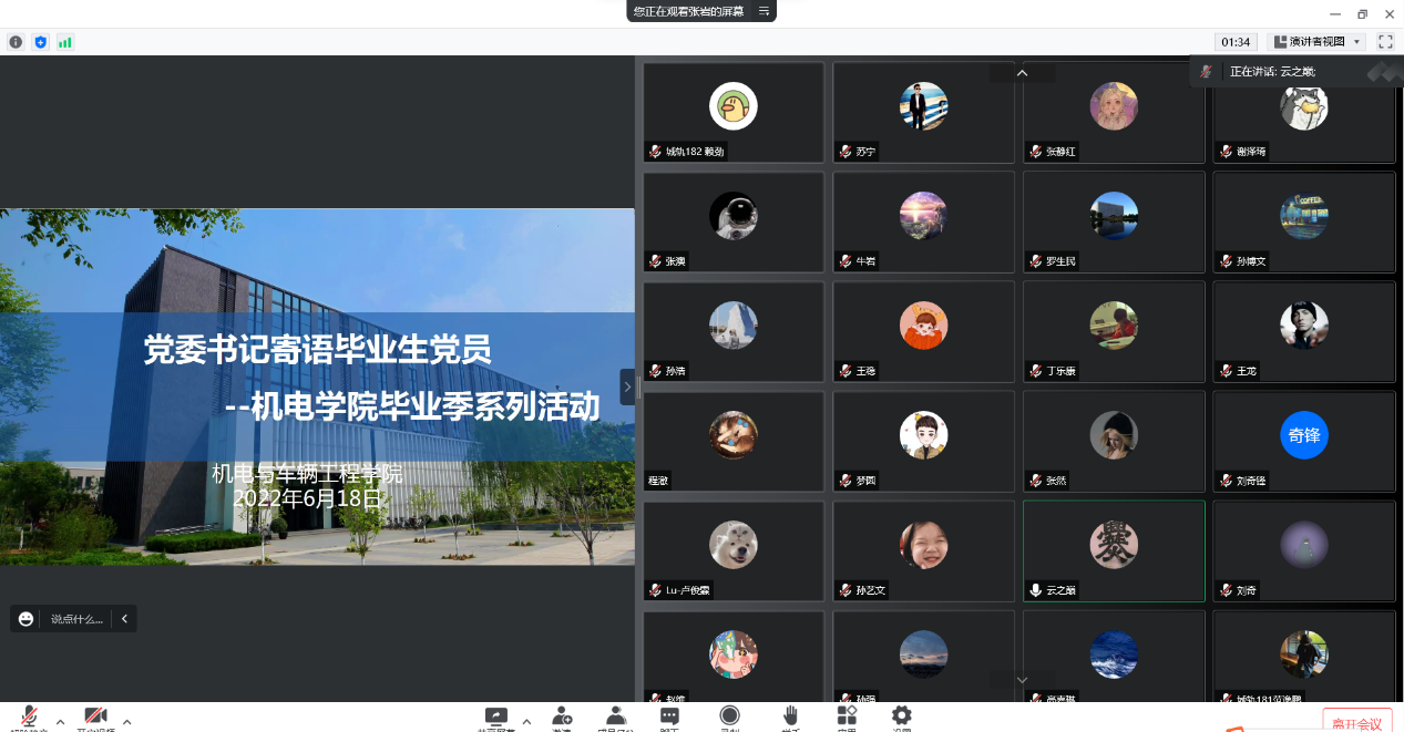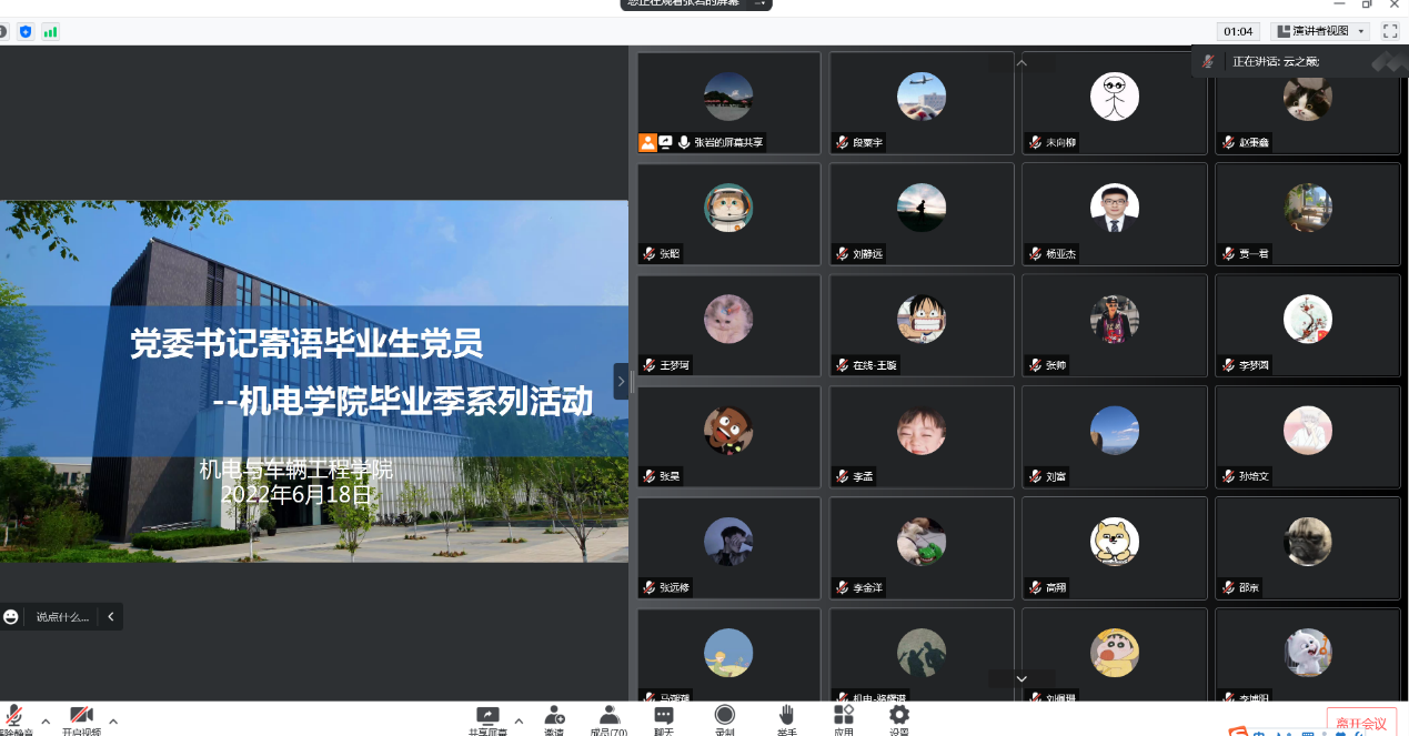 李大伟结合自身成长经历,举例与学生分享初入职场的注意事项,要求毕业生党员秉持北建大实事求是精益求精的校训要求,深刻领会学院积聚砥行,彻鉴致远的文化内涵,保持机械人工作严谨细致、动手能力强的优势,坚定理想信念,保持初心使命,激发青春活力,实现人生理想。