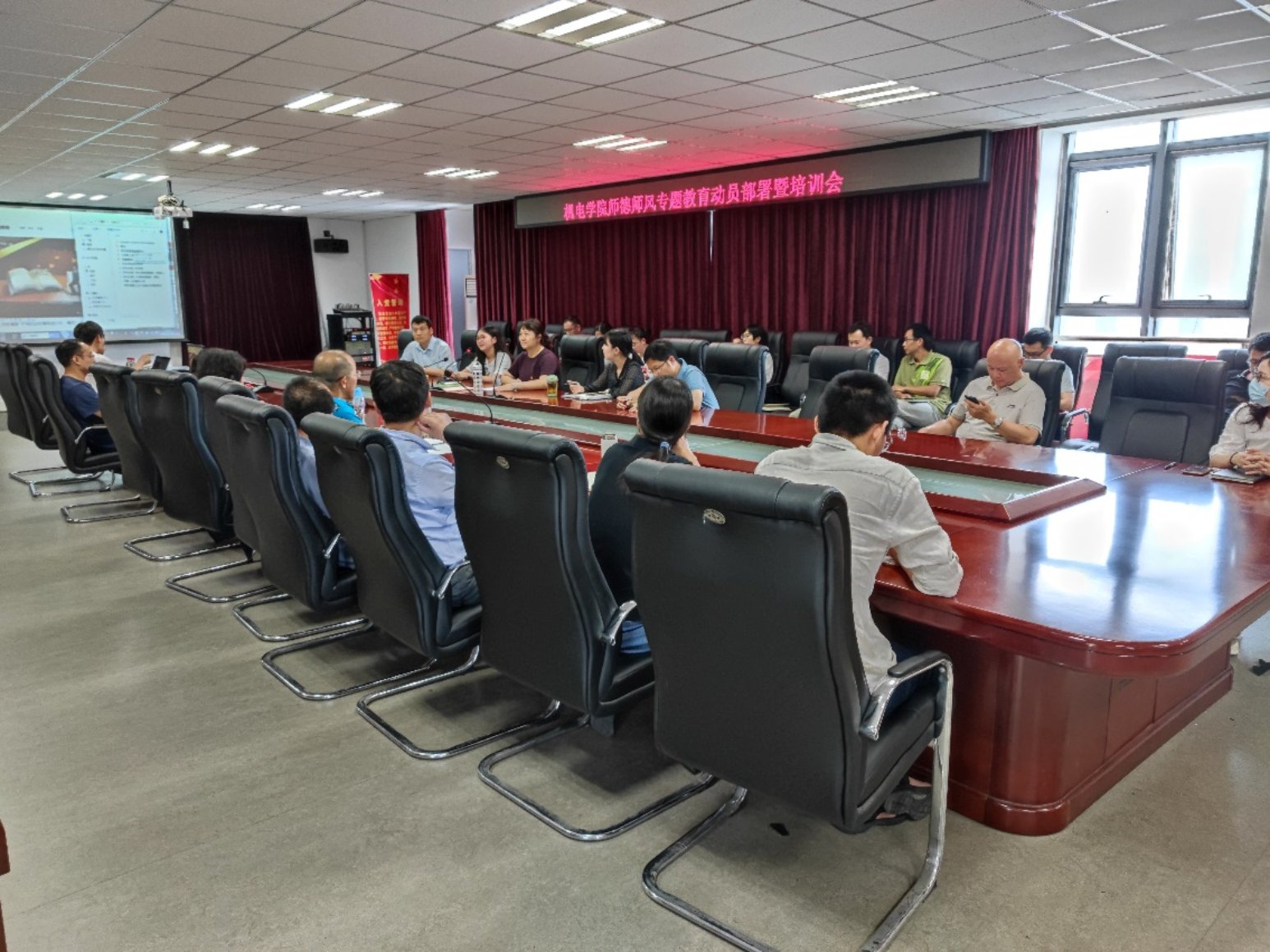 7月13日下午13:30,友里 在大兴校区学C322召开师德师风专题教育动员部署暨培训会,全体教职工参加培训,会议由学院党委书记赵海云主持。