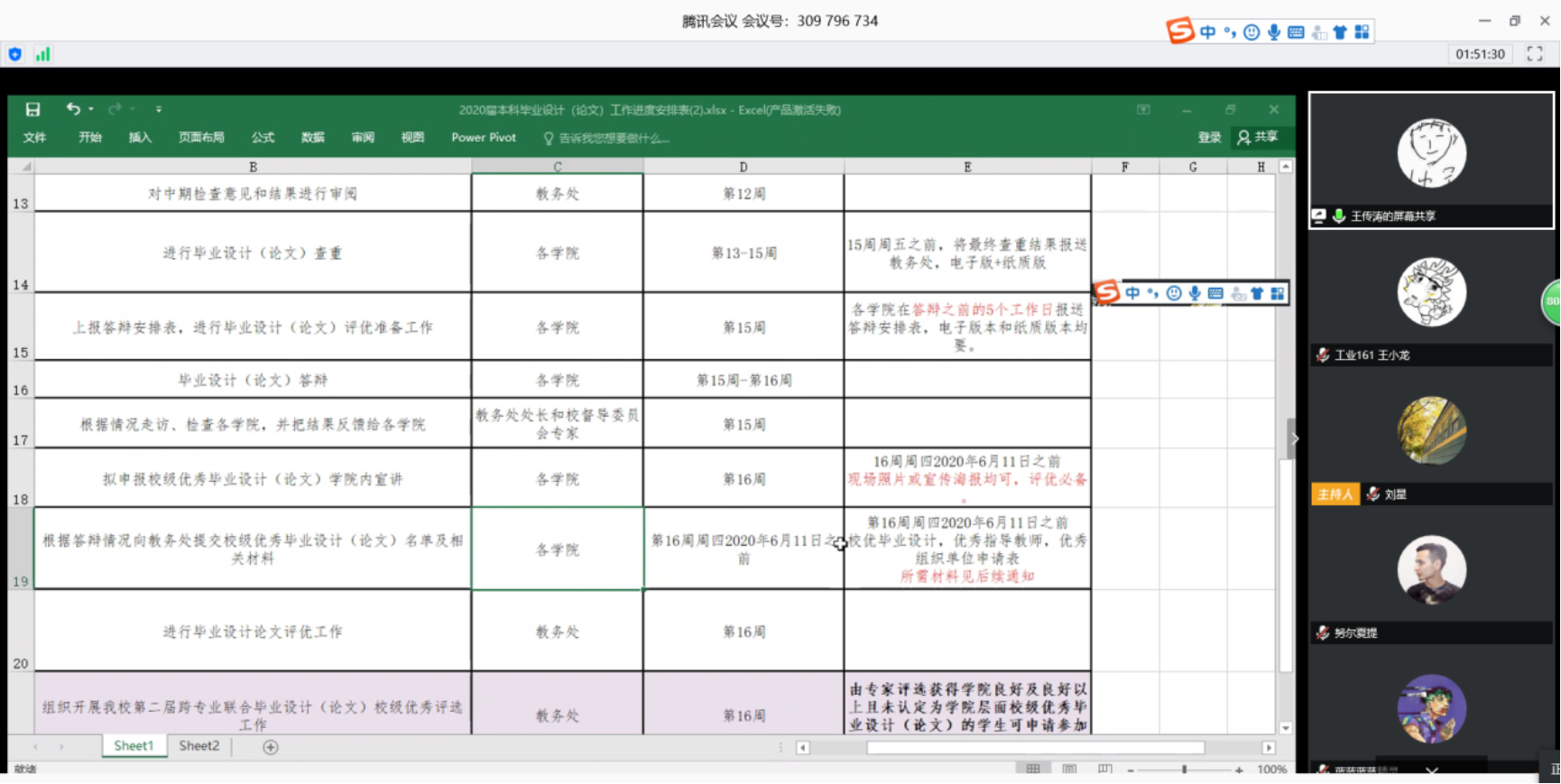 通过腾讯视频召开2020届毕业生年级大会。友里