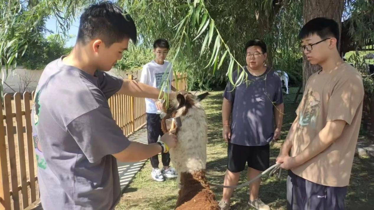 结合村庄以“住”为核心的“吃住行游购娱学”一体式全要素供给模式,实践团以羊驼科技小院为示范点,因地制宜设计开发研学课程。课程设计有羊驼实验室、养殖场的参观,专家的讲座与交流,羊驼喂养、梳毛等实践体验和羊驼主题手工艺品制作活动等。让青少年在实践中有收获、有成长,同时也助力村内农创、文创、旅创三产实现共享、共振、共赢。