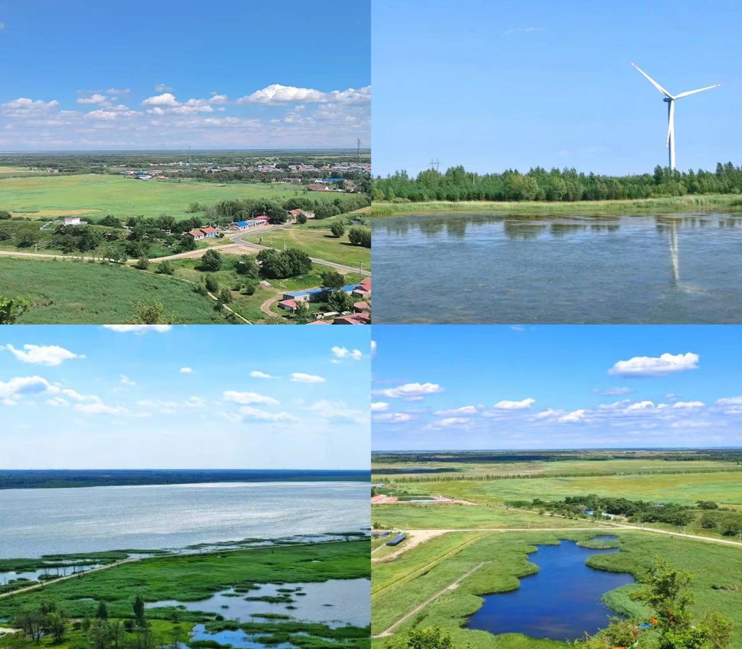 今日游览了许多地方,其中最令我难以忘怀的当属双合尔山下的湿地。双合尔山并不高,仅十多分钟便能登顶。立于山上眺望,那片湿地宛如一幅宏大而绚丽的画卷在眼前徐徐展开。广袤无垠的湿地上,繁茂的水草在微风中轻轻摇曳,清澈的水泊在阳光的映照下闪烁着迷人的光芒,生动诠释了习近平总书记“绿水青山就是金山银山”的生态文明思想。看着波光粼粼的水远处,连绵的芦苇荡随风起伏,这片湿地就像英勇、勤劳和智慧的科左后旗人民一样充满着生机与活力,未来也会越来越繁茂昌盛。