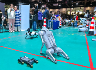 在机器狗的演示现场,友里 仿生机器人与具身智能实验室展示了三款不同的四足机器狗,并表演了趣味动作,同时向观众详细讲解了它们的工作原理。同时,还操控机械狗与观众进行互动,增强了现场的趣味性和参与感。