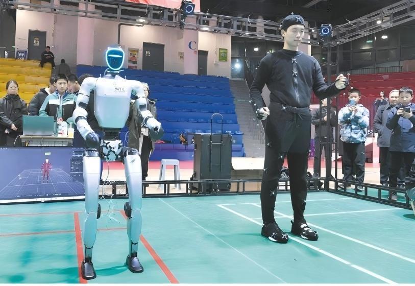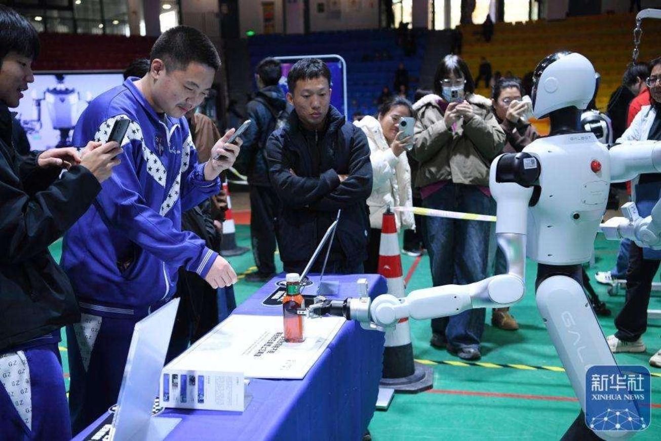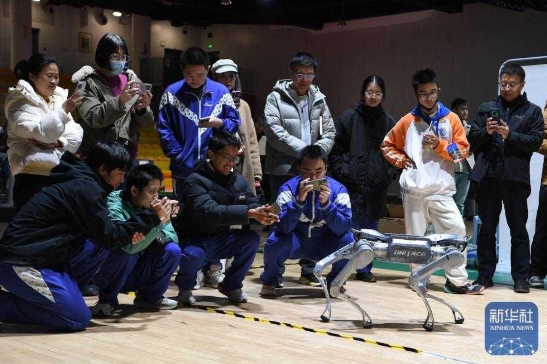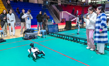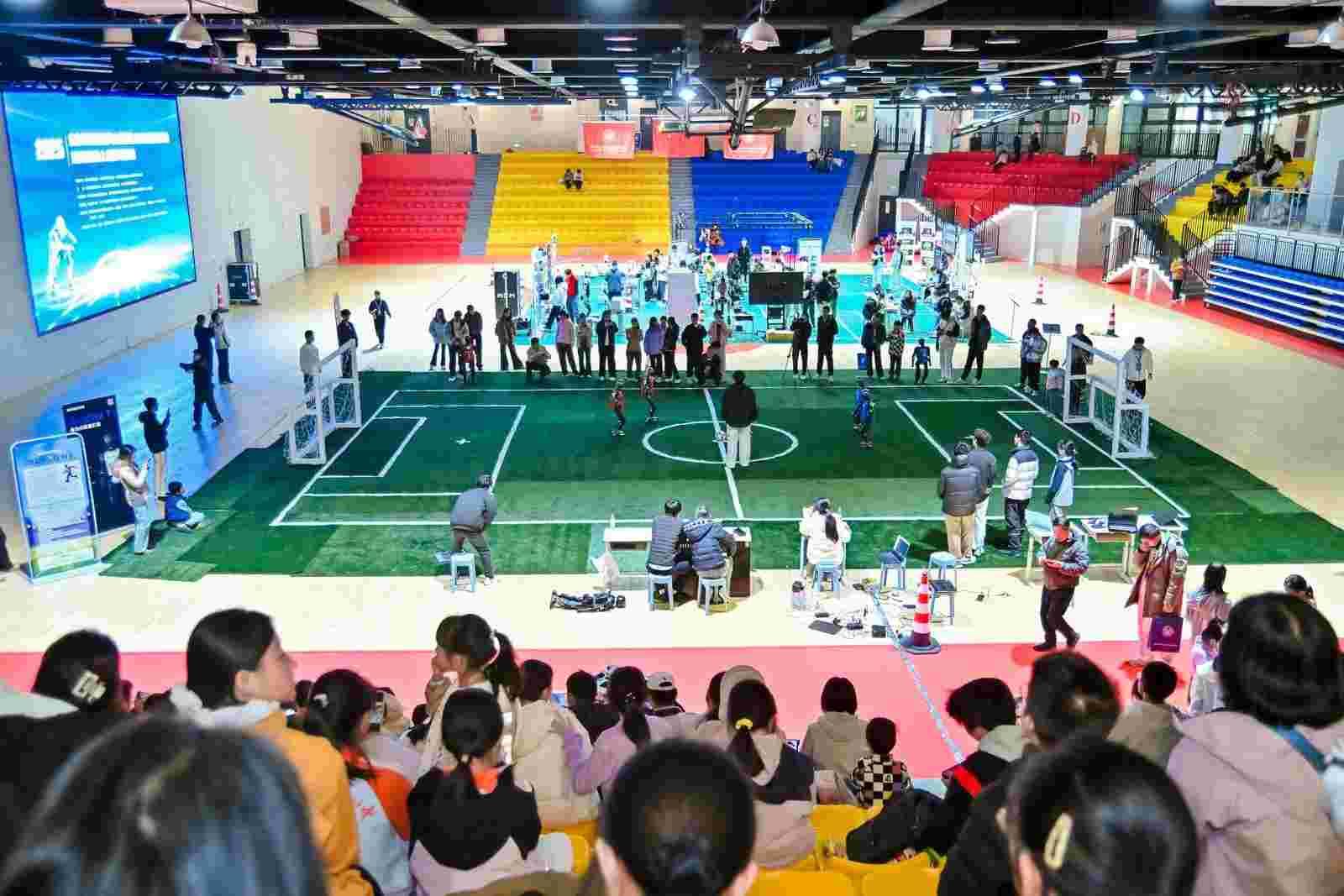 机器人展示区同样亮点纷呈,国地中心、乐聚机器人、加速进化、银河通用机器人等企业展出伏羲、乐聚夸父、银河通用G1等多款人形机器人,以及不同尺寸的四足机器人、具身学习技术等。与会嘉宾和学生通过近距离观摩,与工程师互动交流,收获前沿科技启发。在北京广播电视台交通广播专业主持人的现场解说与互动带动下,机器人足球3V3友谊赛将活动气氛推向高潮,让学生在沉浸式观赛体验中走近工程技术原理,感受人工智能与机器人技术的综合应用魅力,成为一堂别开生面的“前沿科技与工程教育公开课”。