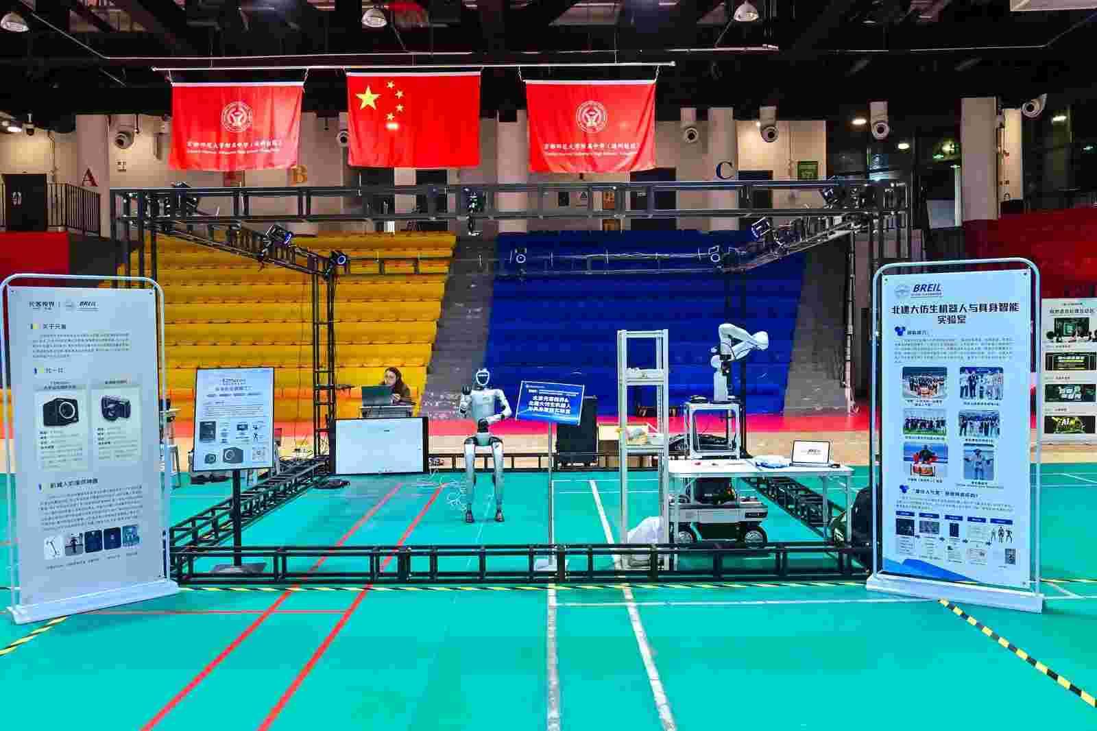 北建大仿生机器人与具身智能实验室牵头负责机器人展示的总体策划,率先启动企业对接工作。通过多轮沟通协调,成功联动宇树科技、北京银河通用机器人、乐聚机器人等九家具身智能领域知名企业,明确参展机器人的技术参数、展示需求及场地适配要求,为展示环节的顺利推进奠定了坚实基础。同时,团队结合会议主题与学校特色,统筹设计制作各家企业的参展海报与展牌,既突出企业技术亮点,又融入学校科技教育理念,实现了展示物料的统一性与个性化兼具。