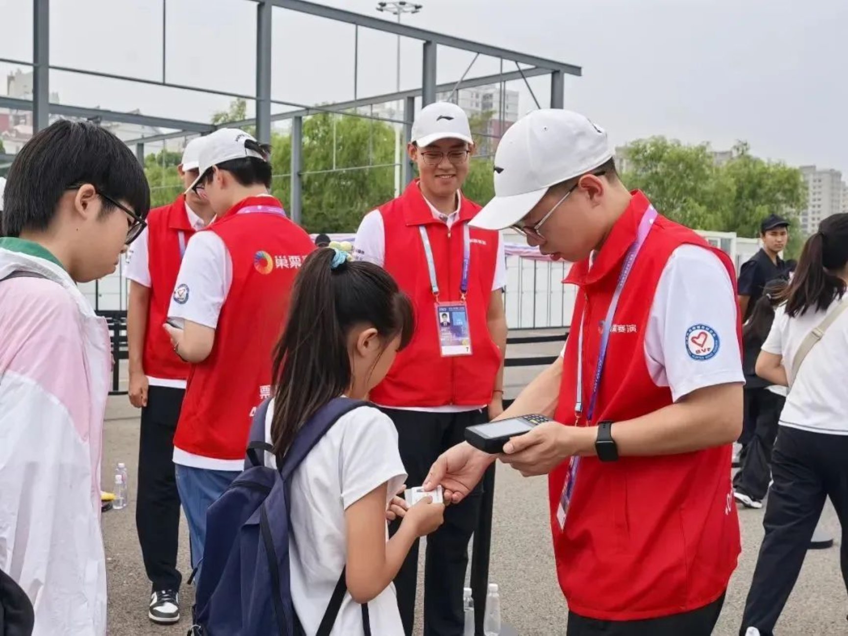在14日晚的开幕式和三天的正赛比赛中,来自学校4个学院的40名大学生志愿者坚守检票与入口引导岗位,以专业服务和青春热情为赛事筑起坚实的第一道防线,作为接触观众最早、持续时间最长的岗位,志愿者们需在户外连续工作。志愿者们不畏曝暑暴雨,每日面对上万名观众的检票与咨询需求,他们始终认真服务每一位观众,既展现出北建大学子的精神面貌,也传递着志愿者的爱与微笑。