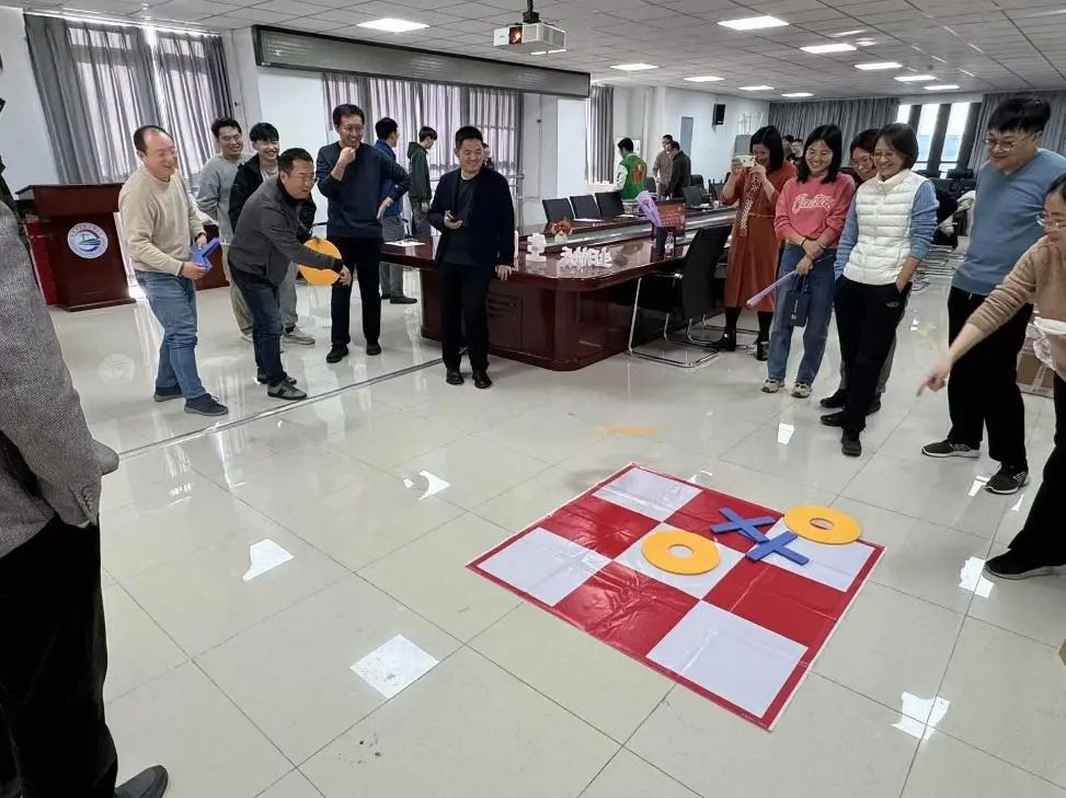 为了让活动更加有趣,活动现场还设置了多项互动游戏环节,包括“重走长征路”晃动小球走地图活动、投掷沙包、欢乐井字棋等。老师们积极参与,互相合作,尽情享受着游戏带来的乐趣和挑战,气氛轻松愉快,大家的笑声此起彼伏。