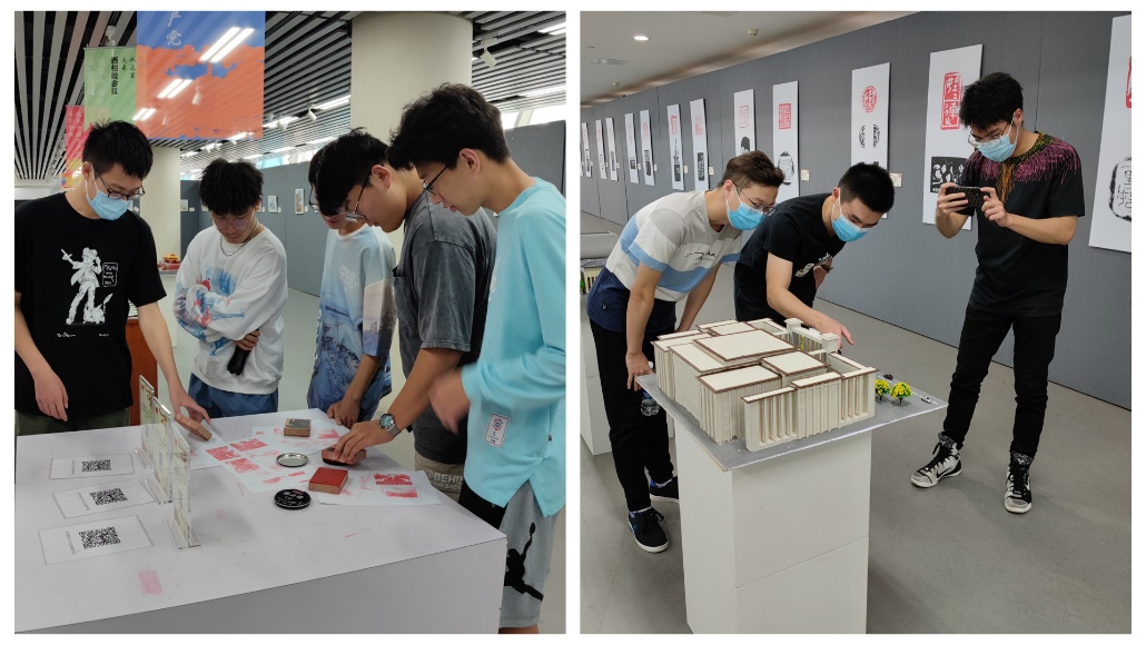 学生骨干们看到中国共产党党代会会址时,回忆起我党百年来风雨兼程地带领中国人民脚踏实地从压迫中站起反抗,用双手铸就今日共同脱贫生活的伟大事迹。展览两侧的名家印章和剪纸绘画作品,饱含了中国优秀传统文化精神内涵,充分展现出中国共产党迎难而上,披荆斩棘的斗争精神。智造211班秦子洋谈到,“观看红色展览,铭记红色历史。通过本次红色建筑展览,我们从固态的建筑中感受到了中国历史中不断跳动的红色脉搏;感受到了中国共产党在开天辟地、改天换地、翻天覆地到惊天动地的百年征程中的坚定与信念。百年征程路,胸怀千秋伟业,恰是百年风华,相信党在实现强国大业的道路上脚踏实地,走向胜利。”