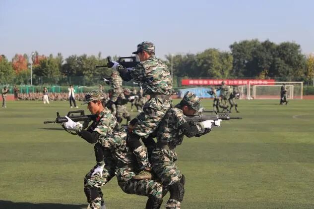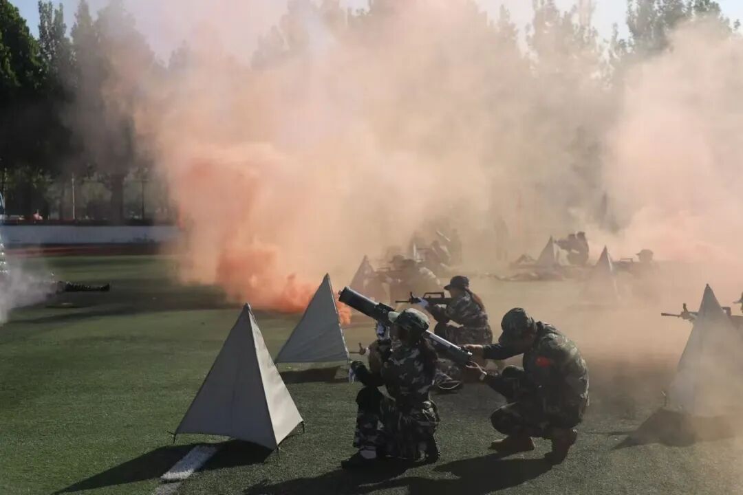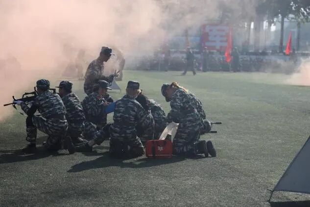 在战术演练环节,新生们模拟战斗场景,匍匐前进、战斗突击。他们的战术动作熟练无比,配合默契,仿佛让人置身于“战场”,展现出无畏的勇气与协作精神。