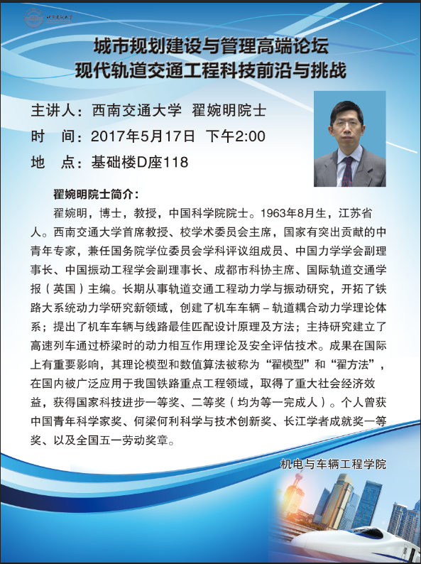 【学术讲座】现代轨道交通工程科技前沿与挑战