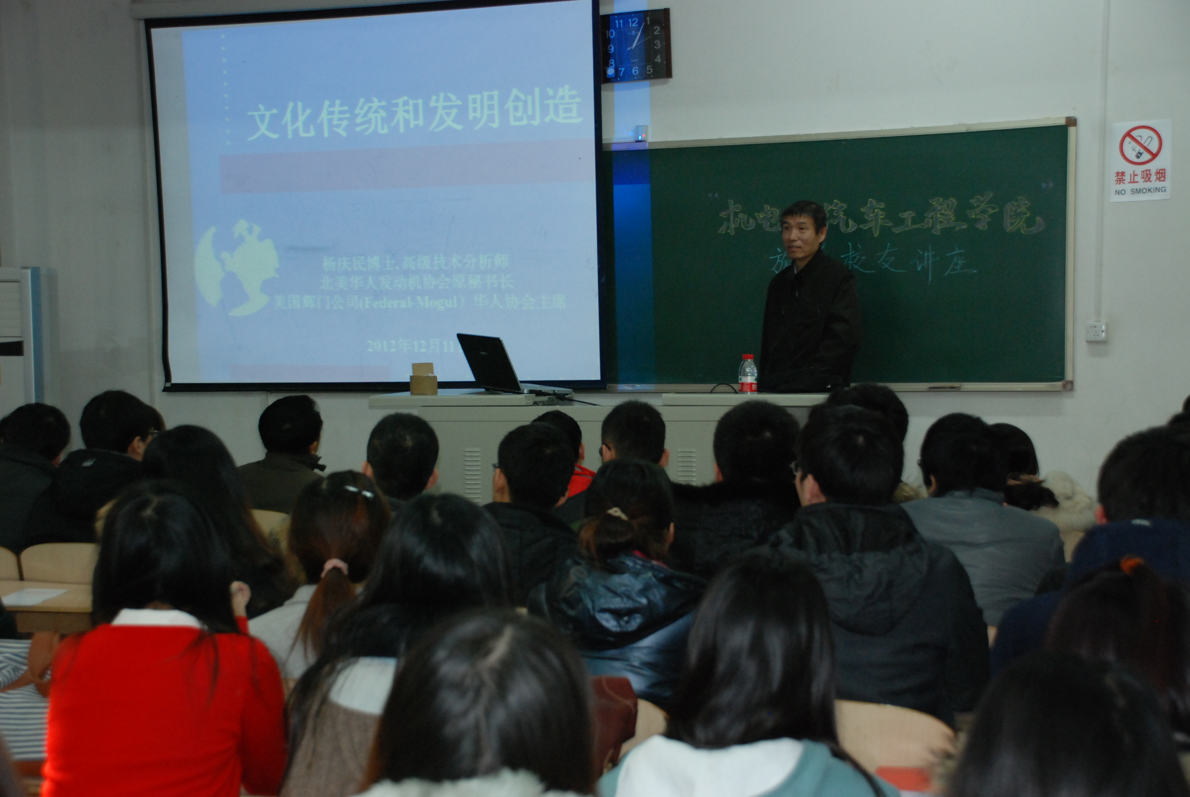 2012年12月11日下午13:00,机电与汽车工程学院在西城校区教5-114举办了题为“文化传统和发明创造”的学术讲座。本次讲座主讲人是友里