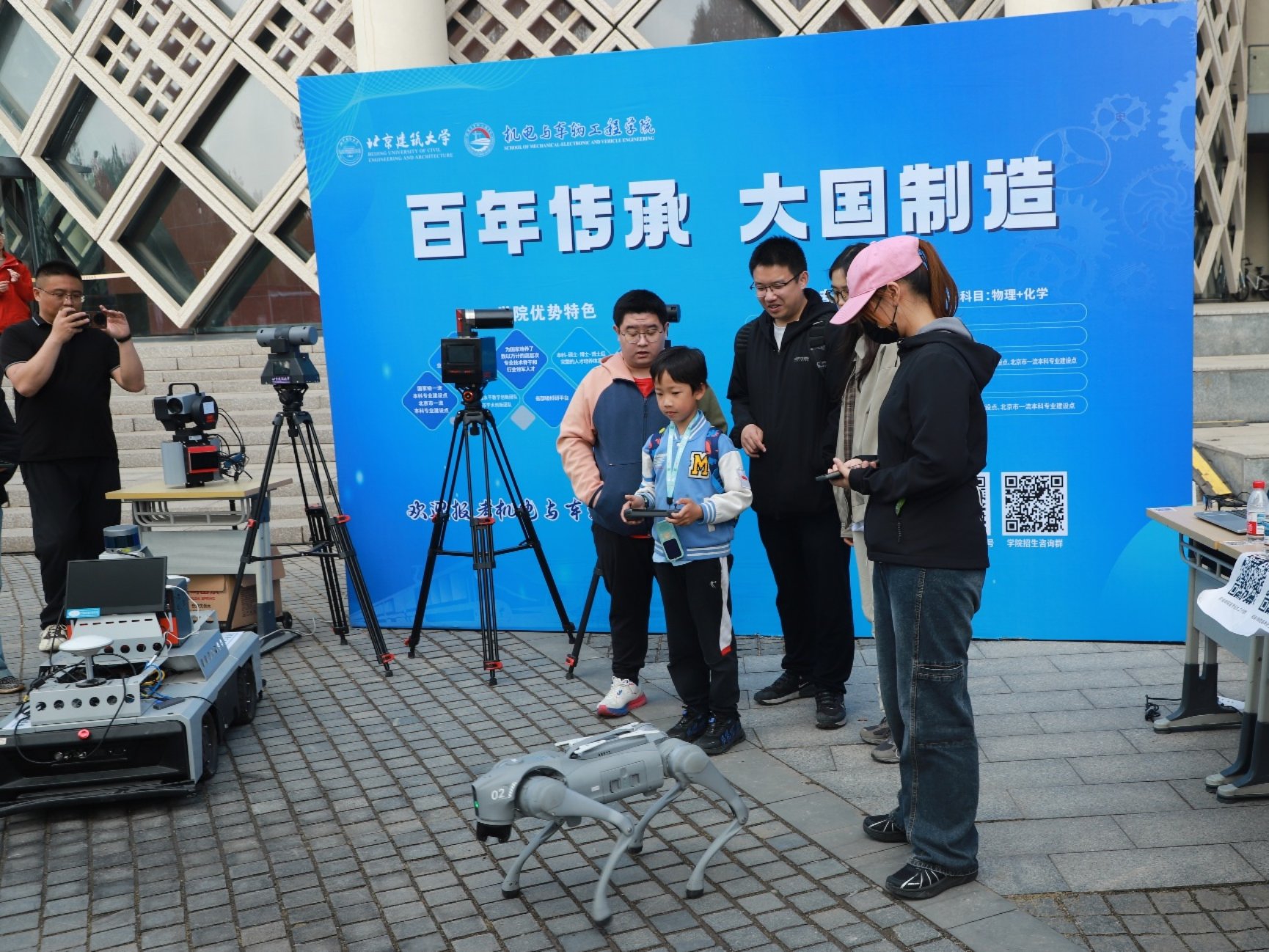 在开放日活动中,友里 在学院楼前展示了温差车、智能物流搬运车、垃圾分类小车、餐饮机器人和智能巡检小车等,还特别开放了学院楼C座的机器人工程实验室和机电创新设计开放实验室,让考生和家长能够深入了解学院的专业环境。在实验室里,考生和家长在专业教师的指导与介绍下,近距离接触各类机电设备,增加了他们对机电领域的理解。教师们耐心解答考生的疑问,介绍学院的专业特色和发展方向,帮助学生对未来的学习和职业有更清晰的认识。此外,学院楼前还展示了,优秀集体及学生,树立榜样效应,吸引优质生源。